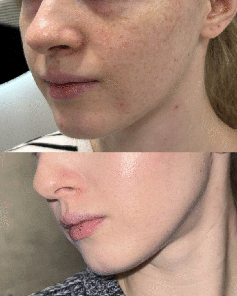 Efekt widoczny na zdjęciu to rezultat jednej sesji, ale pełną regenerację i przebudowę skóry uzyskujemy po wykonaniu serii zabiegów. Wszystko zależy od indywidualnych potrzeb i kondycji skóry.Laser tulowy w Face Flow Clinic to mój faworyt w pracy ze skórą szarą, nierówną, z przebarwieniami i utraconą elastycznością.